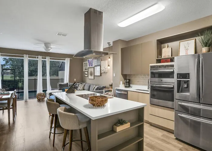 Esta villa está situada en el distrito Celebration, a unos 10 minutos en coche del Parque acuático Disney's Blizzard Beach. Los amantes de la naturaleza disfrutarán de la proximidad al Animal Kingdom, situado a 4 km. Los huéspedes también pueden llegar al Bulevar Emerald Island, que está a 15 minutos en coche.
